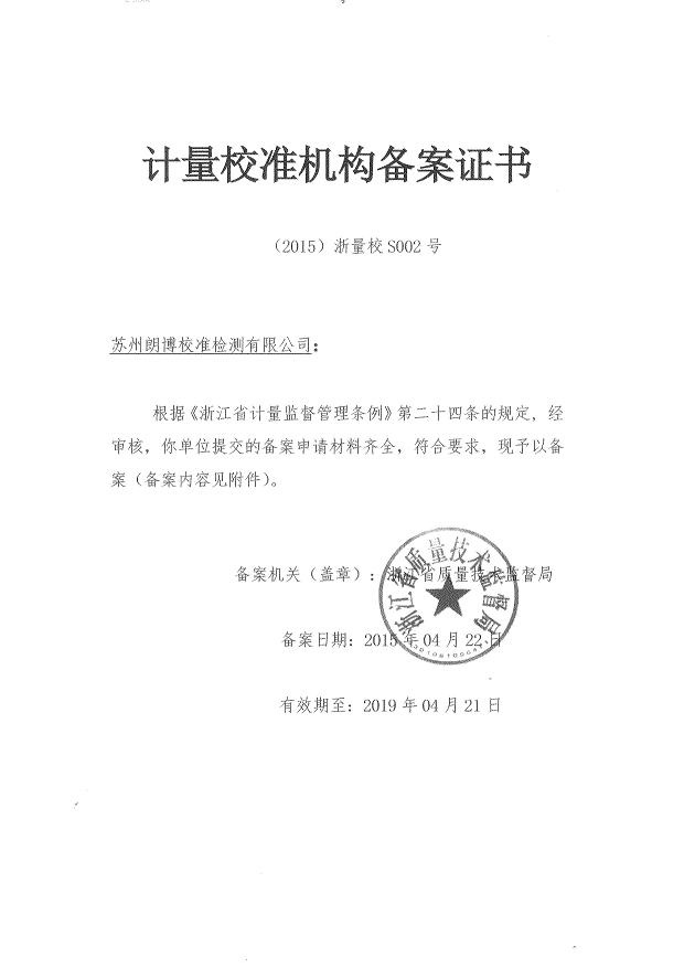 寧波朗博計(jì)量檢測(cè)有限公司是寧波計(jì)量檢測(cè)、寧波儀器檢測(cè)、寧波儀器校準(zhǔn)、寧波計(jì)量檢測(cè)、寧波儀器校正、寧波儀器計(jì)量校驗(yàn)的計(jì)量校準(zhǔn)檢測(cè)技術(shù)服務(wù)公司。寧波朗博計(jì)量檢測(cè)有限公司屬于朗搏校準(zhǔn)檢測(cè)集團(tuán)公司,集團(tuán)公司另外下轄蘇州朗博校準(zhǔn)檢測(cè)有限公司和北京朗博校準(zhǔn)檢測(cè)有限公司,另外在南京、揚(yáng)州、南通、廣州東莞、山東濰坊、安徽合肥、越南北寧等地設(shè)置辦事機(jī)構(gòu)。朗博校準(zhǔn)檢測(cè)集團(tuán)通過中國(guó)合格評(píng)定國(guó)家認(rèn)可委員會(huì)(CNAS)及國(guó)防科技工業(yè)實(shí)驗(yàn)室認(rèn)可委員會(huì)(DILAC)認(rèn)可與授權(quán),專業(yè)從事計(jì)量校準(zhǔn)、檢測(cè)(包含軍用設(shè)備檢測(cè))和維修服務(wù)的綜合實(shí)驗(yàn)室,可以開展900多個(gè)項(xiàng)目的校準(zhǔn)和檢測(cè)技術(shù)服務(wù),所出具的校準(zhǔn)證書及檢測(cè)報(bào)告獲得國(guó)際實(shí)驗(yàn)室認(rèn)可合作組織多邊協(xié)議(ILAC-MRA)成員中48個(gè)國(guó)家和地區(qū)的認(rèn)可。校準(zhǔn)檢測(cè),實(shí)驗(yàn)室建有幾何量、熱工、力學(xué)、電磁、無線電、時(shí)間頻率、振動(dòng)、聲學(xué)、光學(xué)、理化等專業(yè)校準(zhǔn)實(shí)驗(yàn)室。實(shí)驗(yàn)室嚴(yán)格按照國(guó)家相關(guān)檢定規(guī)程、校準(zhǔn)規(guī)范、國(guó)家標(biāo)準(zhǔn)或儀器說明書技術(shù)指標(biāo)的要求等進(jìn)行全面的校準(zhǔn)檢測(cè);實(shí)驗(yàn)室的校準(zhǔn)檢測(cè)工作完全滿足ISO/IEC17025和ISO9000的要求,實(shí)驗(yàn)室所出具的第三方公正的校準(zhǔn)證書及檢測(cè)報(bào)告獲得國(guó)際實(shí)驗(yàn)室認(rèn)可合作組織多邊協(xié)議(ILAC-MRA)成員中48個(gè)國(guó)家和地區(qū)的認(rèn)可。